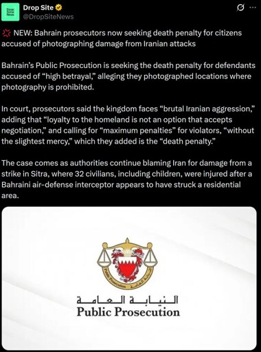 geneva_convenience@lemmy.ml to World News@lemmy.ml · 48 minutes agoQatar arrests 313 people for sharing attacks footage, ‘rumours’plus-squarewww.straitstimes.comexternal-linkmessage-square0fedilinkarrow-up122arrow-down10