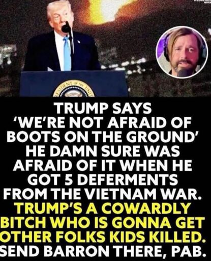 Redditsux@lemmy.world to politics @lemmy.world · 6 hours agoAnti-War MAGA Unites to Turn on Trump Togetherplus-squarewww.thedailybeast.comexternal-linkmessage-square13fedilinkarrow-up188arrow-down14