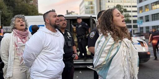 Many of the arrested protesters chanted, “Let Gaza Live!” as their hands were zip-tied and they were hauled off to an awaiting NYPD bus.