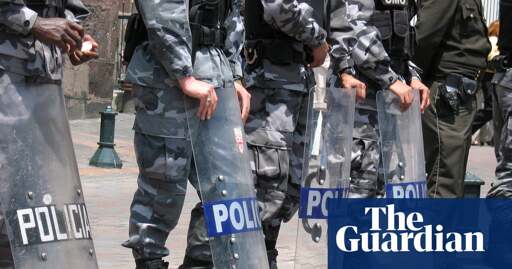 On all three platforms, the statement was illustrated with an image that seemed designed to support Trump’s false claim that protests against immigration sweeps in Portland are so out of control that the city is “burning to the ground”. On one side of the image, a line of police officers held riot shields; on the other, a crowd of young men held up flares that lit up a night sky filled with red smoke.