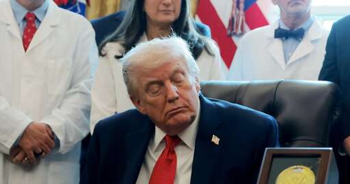 Trump’s eyes drooped and his mouth sagged at an Oval Office event unveiling his downgrade of marijuana’s federal classification.