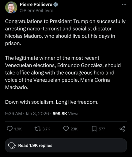 Down with socialism? What the fuck? Does PP think that’s a legitimate reason to overthrow a government?